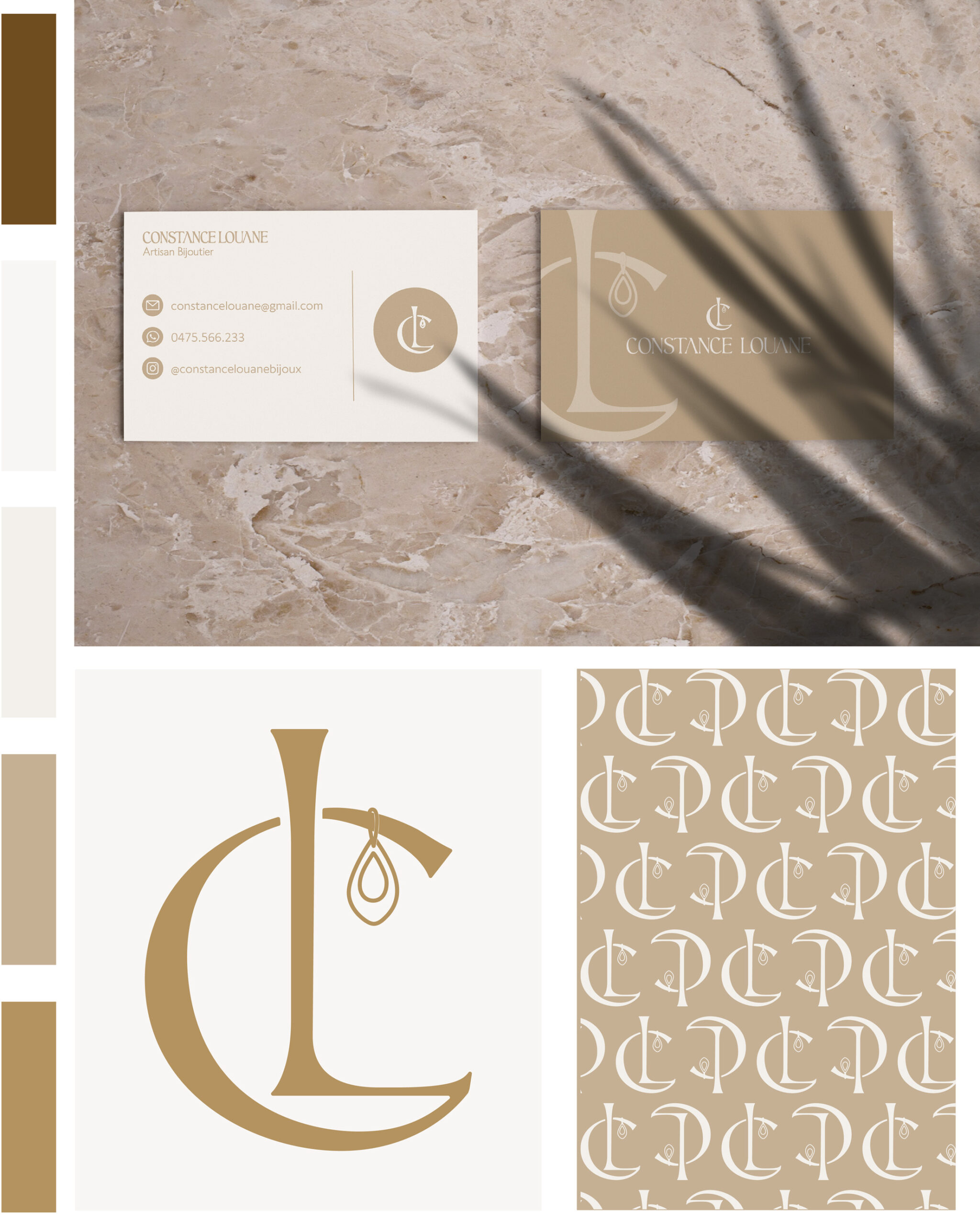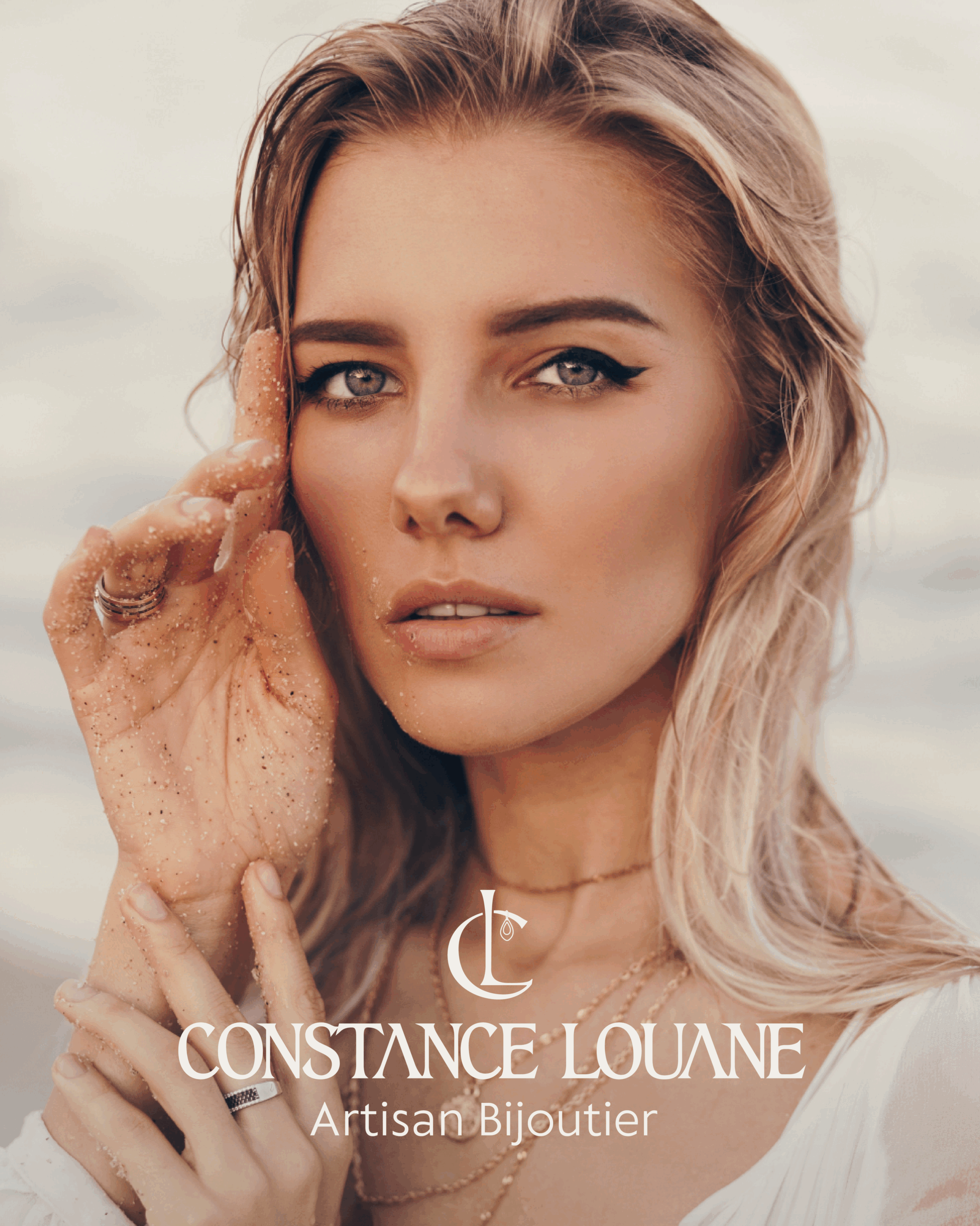 Pour imaginer l’univers graphique de Constance Louane, je me suis d’abord plongée dans son histoire, dans la manière dont elle façonne chaque bijou, patiemment, avec le respect des matières nobles qu’elle sélectionne. J’ai voulu que son identité visuelle raconte cette même attention, cette même délicatesse. J’ai donc construit un univers où l’artisanat, la noblesse des matériaux et l’expertise ne sont pas seulement des valeurs : ce sont les fils conducteurs de toute l’esthétique.